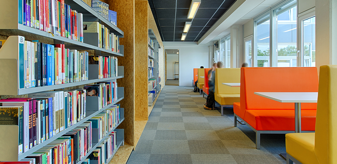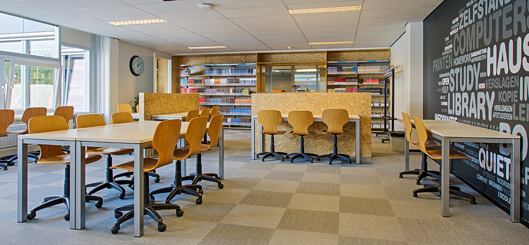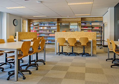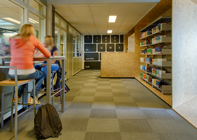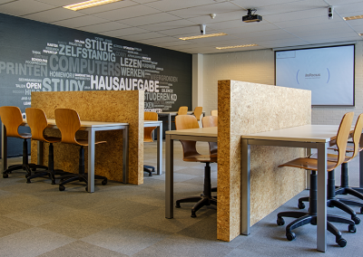 Door de creatieve nieuwe indeling is de ruimte voor verschillende activiteiten te gebruiken. Wanneer leerlingen zelfstandig of in groepjes samenwerken in de ene ruimte kan tegelijkertijd in de andere ruimte een huiswerkklas aan het werk zijn. Een frisse ruimte, die de leerlingen uitnodigt om te gaan werken en gebruik te maken van alle faciliteiten van het studiecentrum.