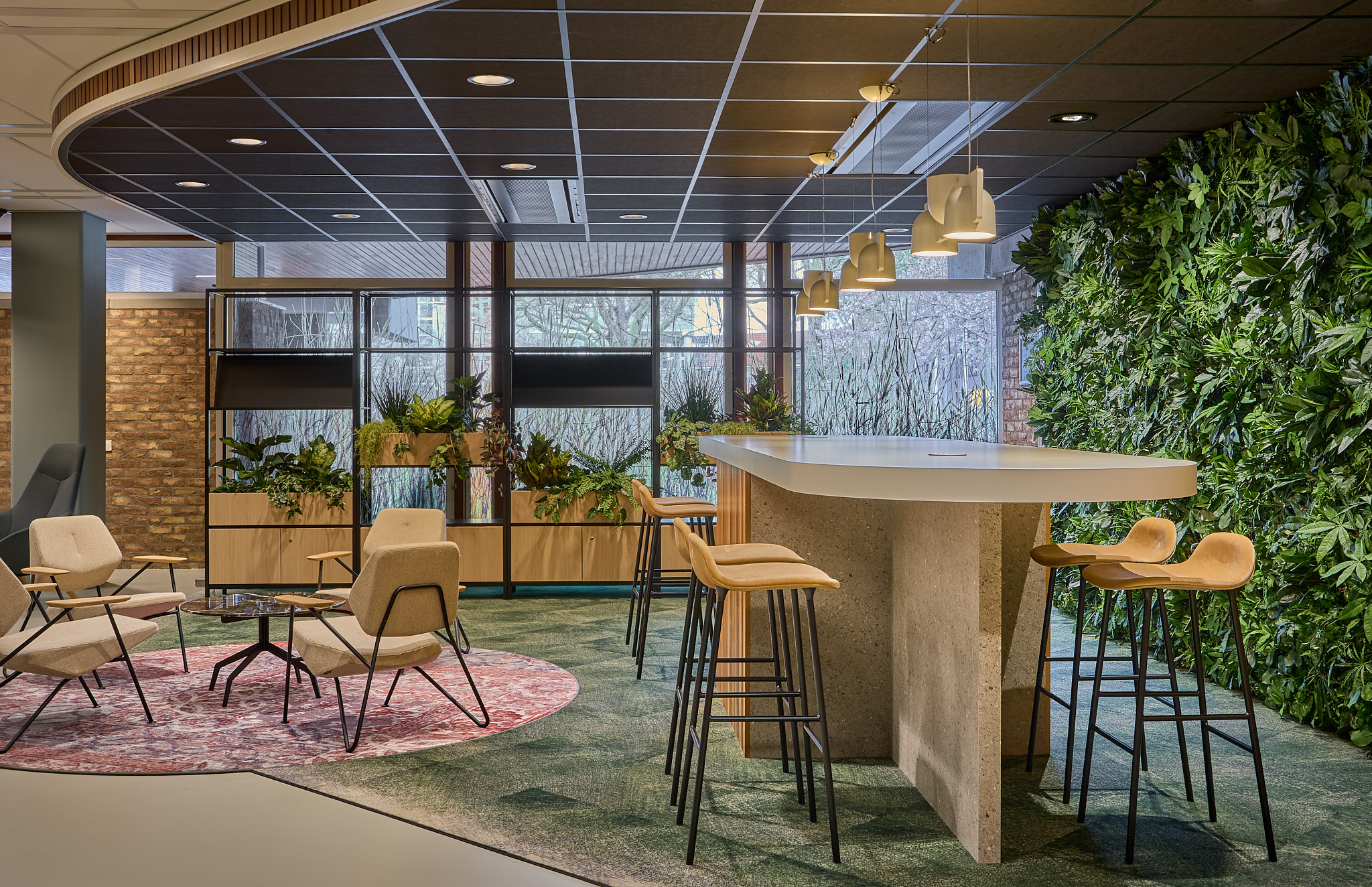 Het werkplein is ontworpen om werkzoekenden een comfortabele en gastvrije plek te bieden. In plaats van een traditionele balie of receptie, worden bezoekers ontvangen bij een bar, waar een medewerker beschikbaar is om hen te begeleiden. Er zijn diverse mogelijkheden gecreëerd om het gesprek in een huiselijke sfeer voort te zetten, bijvoorbeeld in de vintage huiskameropstelling, compleet met makkelijke stoelen. Deze elementen dragen bij aan een ontspannen omgeving waarin mensen zich op hun gemak voelen en openlijk kunnen praten over hun zoektocht naar werk. Voor de meer vertrouwelijke gesprekken zijn er ook diverse overlegruimtes beschikbaar gesteld. Deze ruimtes zijn zorgvuldig ontworpen om dezelfde warme en ongedwongen sfeer te behouden, zodat werkzoekenden zich vrij voelen om hun persoonlijke en professionele uitdagingen te bespreken.