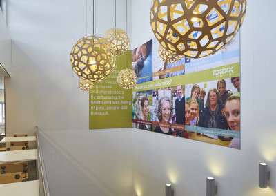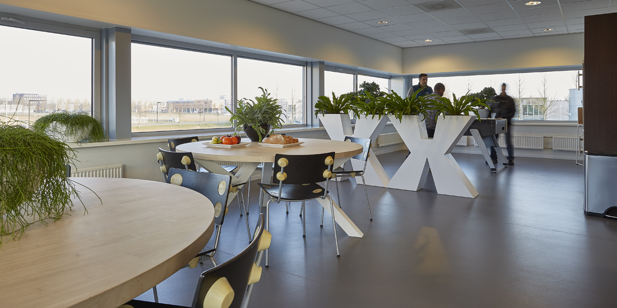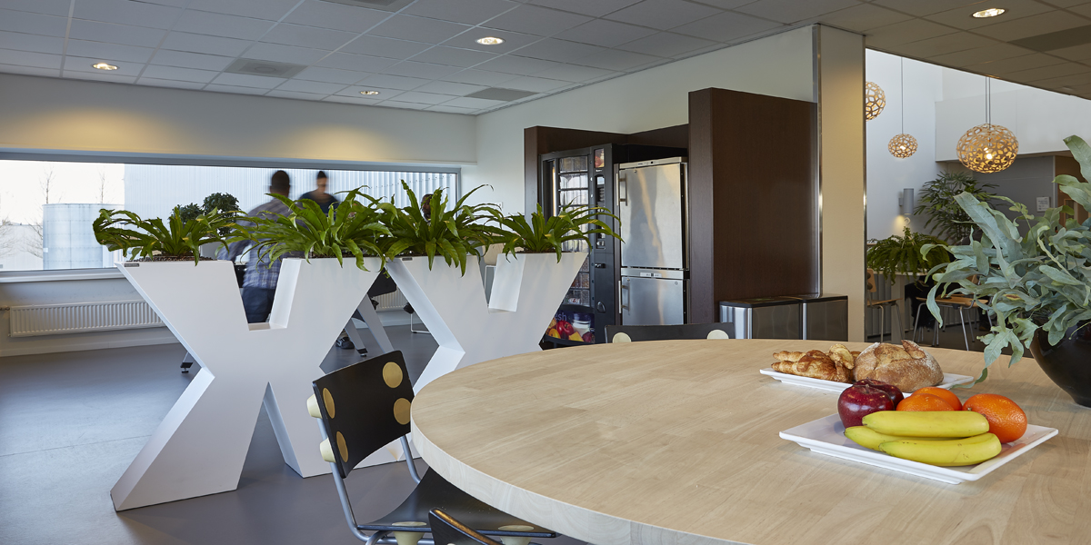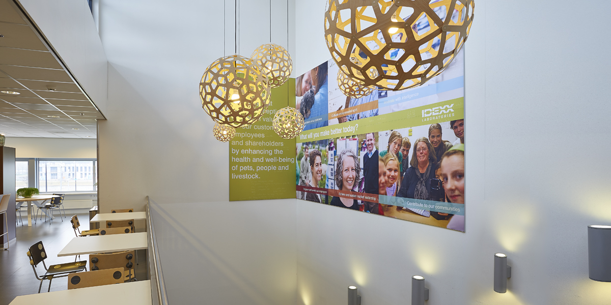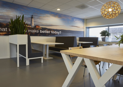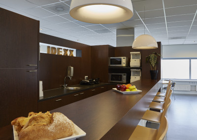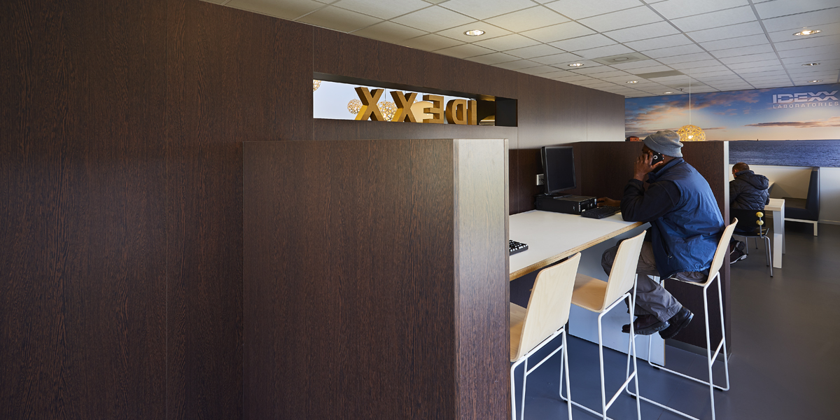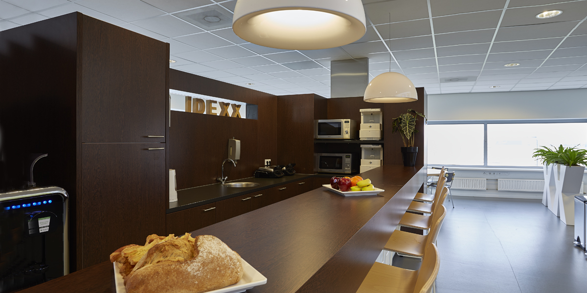 De kantine van Idexx werd slechts enkele uren per dag gebruikt en met name door de werknemers van logistiek die daar hun broodje kwamen eten. De rest van de tijd werd de ruimte niet benut. De uitdaging was dan ook de ruimte zo in te richten dat niet alleen de medewerkers van logistiek van de ruimte gebruik maakten, maar ook het personeel van het kantoor. Tevens moest de ruimte uitnodigend zijn om buiten lunchtijd gebruik van te maken om er een kort intern overleg te hebben of even geconcentreerd te kunnen werken.