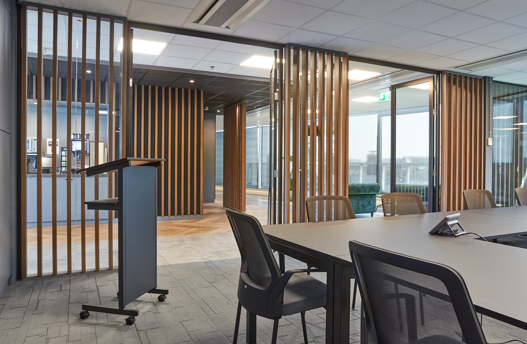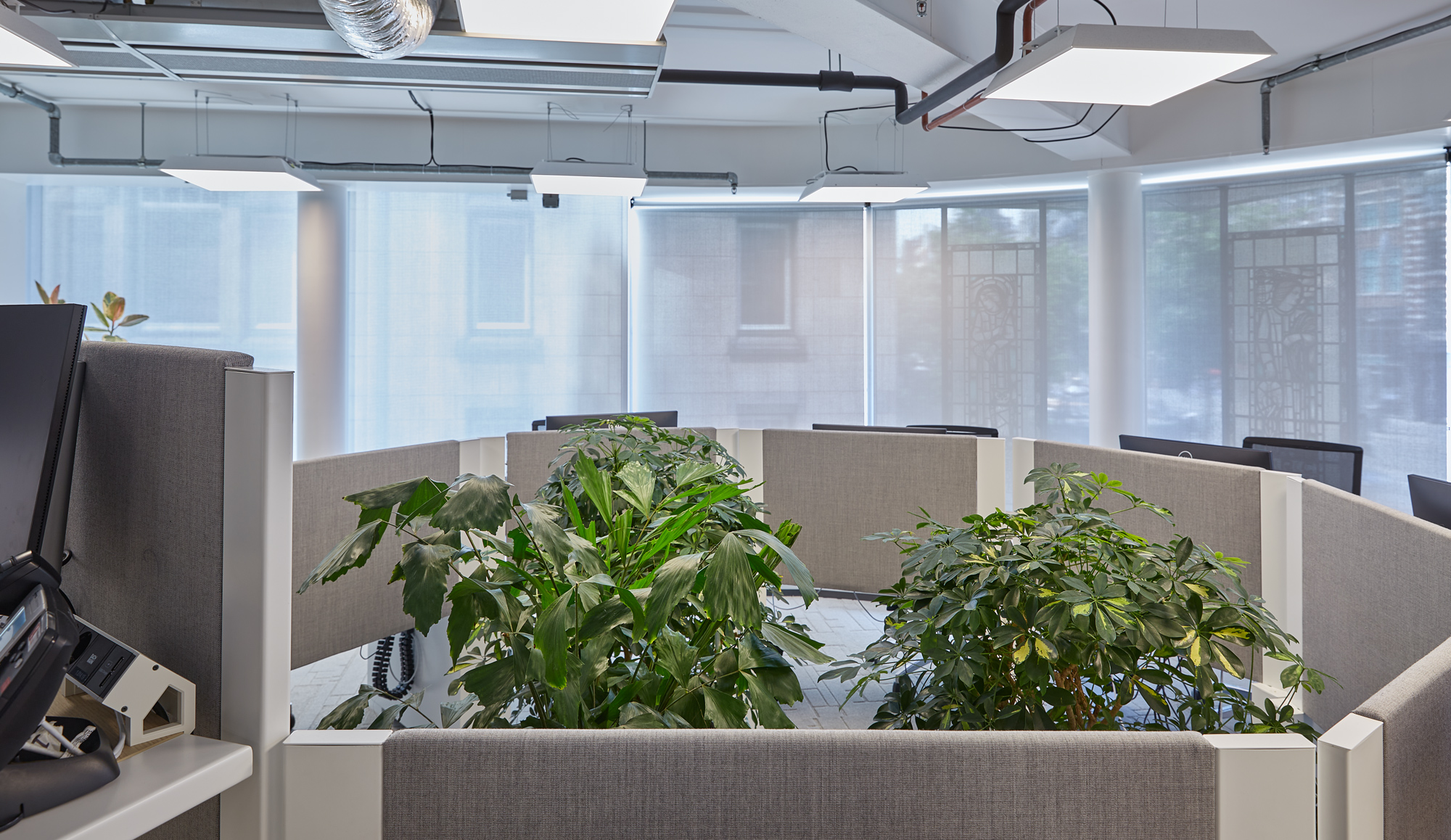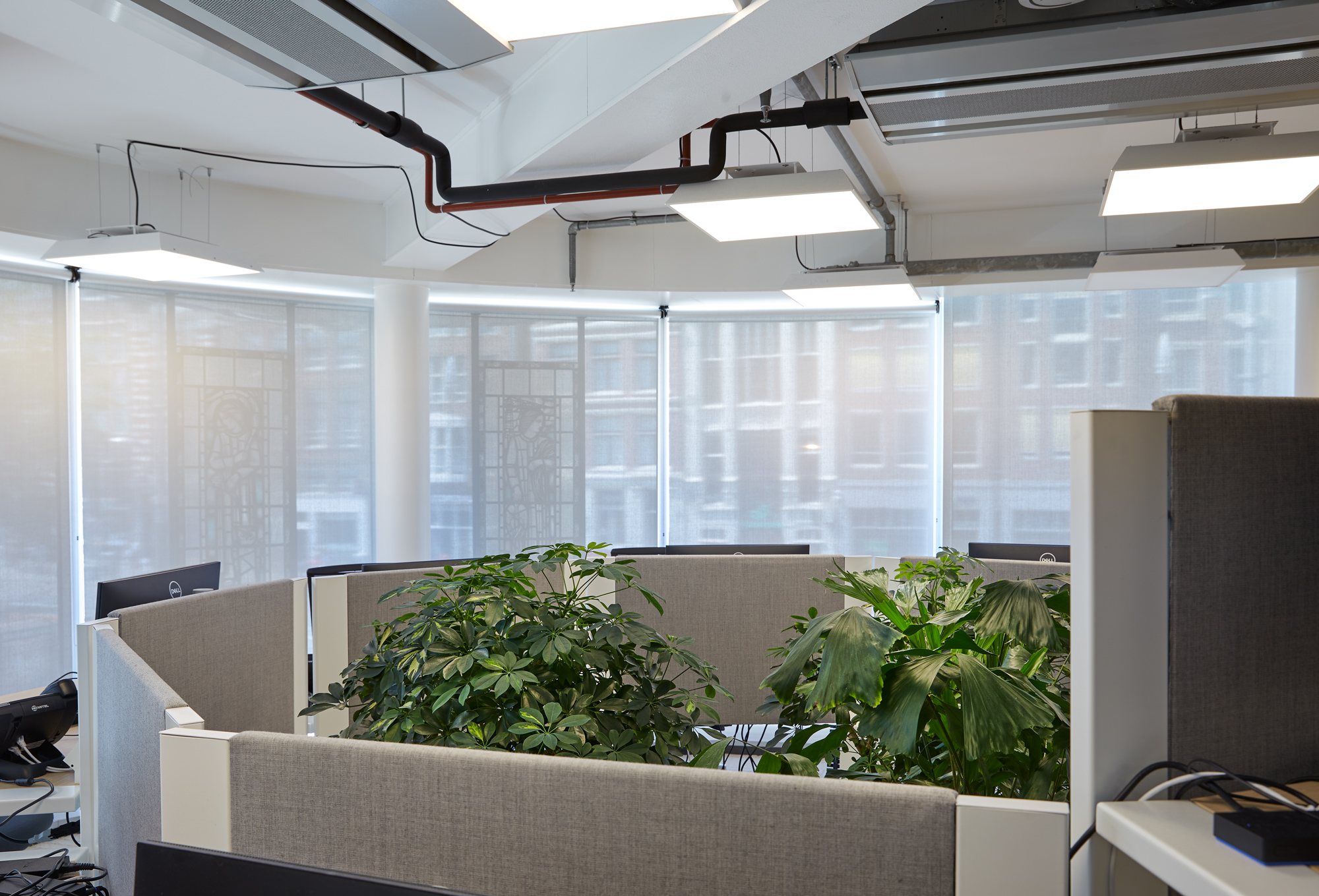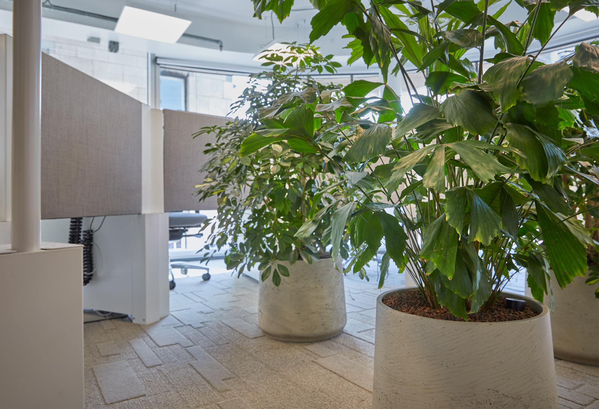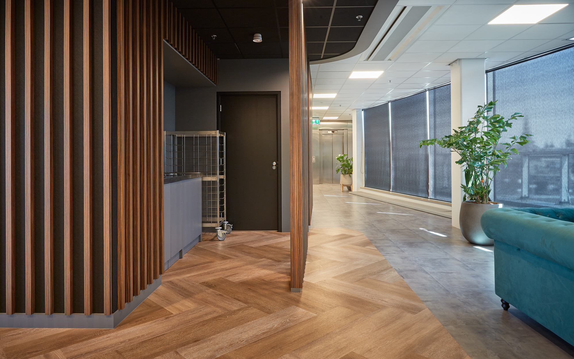 Om een prettige werkervaring te creëren, zijn rond het atrium op verschillende verdiepingen coffeecorners, zitjes en belcellen geplaatst. Deze strategische indeling zorgt ervoor dat medewerkers zich kunnen terugtrekken in een rustige werkomgeving, terwijl informele ontmoetingen en overlegmomenten op natuurlijke wijze plaatsvinden zonder de concentratie van anderen te verstoren.